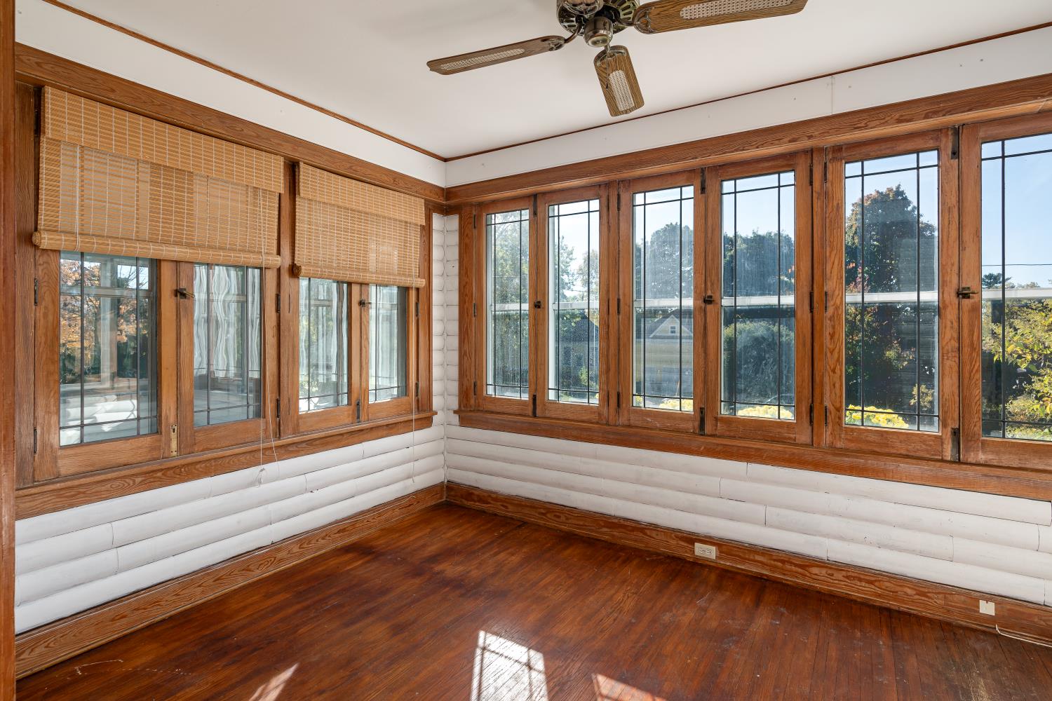 This home was originally owned by Frank McIntosh who founded the local telephone company. The library in Viroqua is named after him. He changed the original outdoor porch to an indoor seating area in the 1930s. The entry porch and the master bedroom porch were both enclosed at a later date.