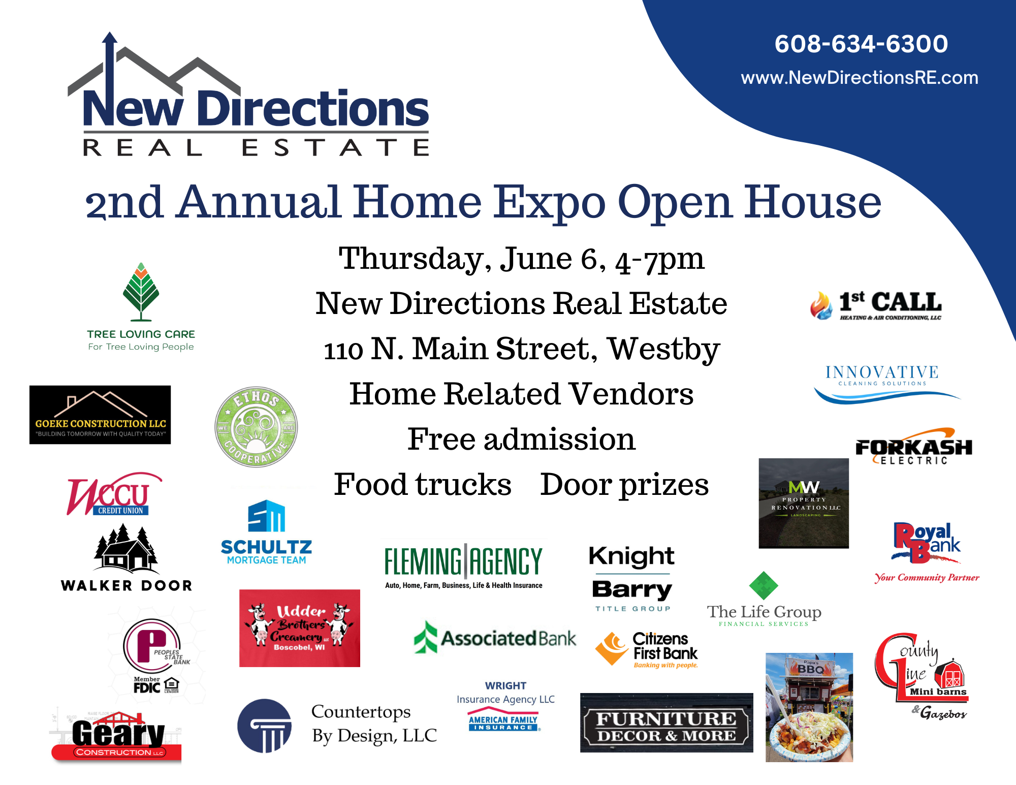 We are excited to host our 2nd Annual Home Expo Open House on Thursday, June 6 from 4-7pm at our Westby location (110 N. Main Street). It will be held outdoors on our parking lot. Whether you are currently or in the near future in the market for a new home, considering selling your home or just interested in possibly some new landscaping or a remodeling project, this Home Expo is for you! We have around 20 home related vendors this year!