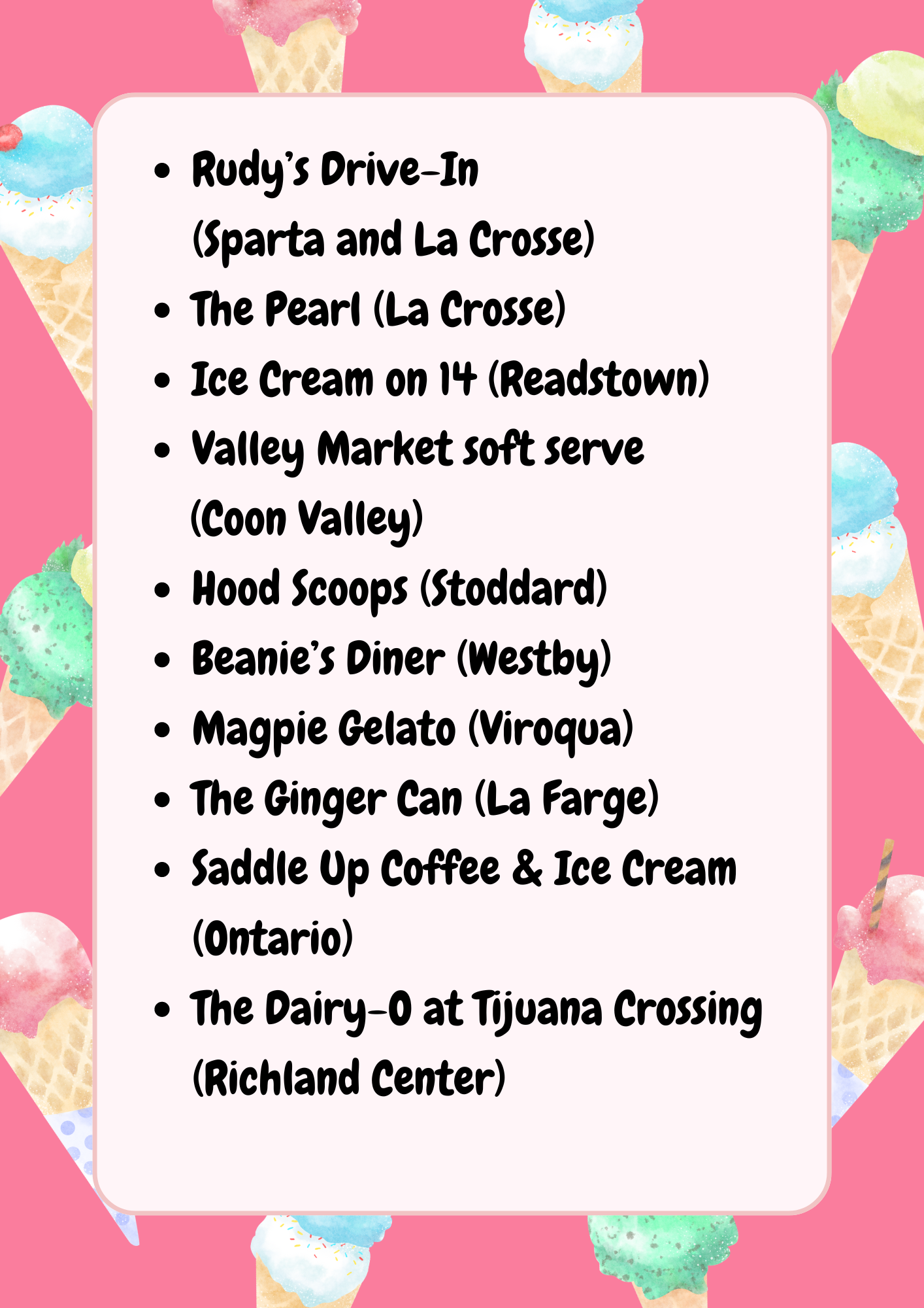 In honor of National Ice Cream Day, the New Directions team members were asked where their favorite ice cream places are. Here is the list of our favorite places (in no particular order.)